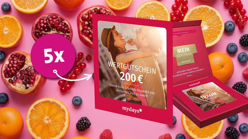 Gewinne einen von insgesamt 5 Erlebnis- gutscheinen von mydays im Wert von 200,00 EUR.